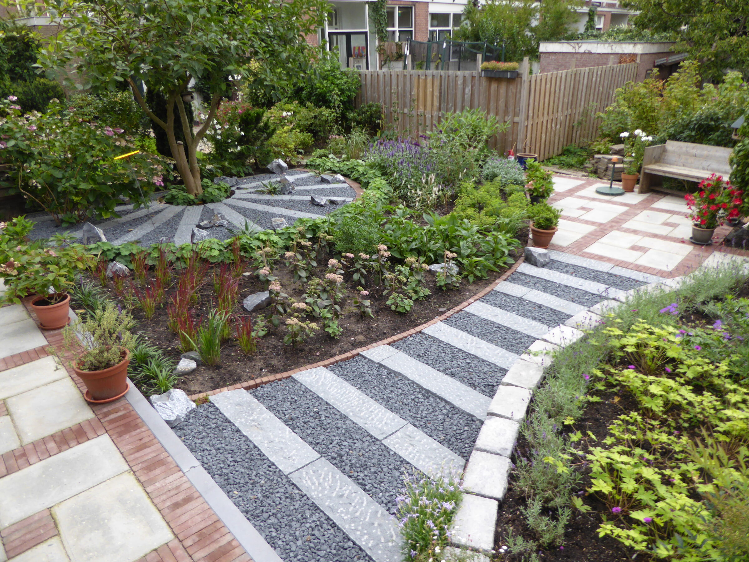Je hebt voor onze tuin een ontwerp gemaakt dat is uitgevoerd door een Oosterbeeks tuinbedrijf. De eerste zomer was het nog een heel erg nieuwe tuin. Afgelopen zomer heeft de tuin zich verder ontwikkelt en hebben we daar echt van genoten!