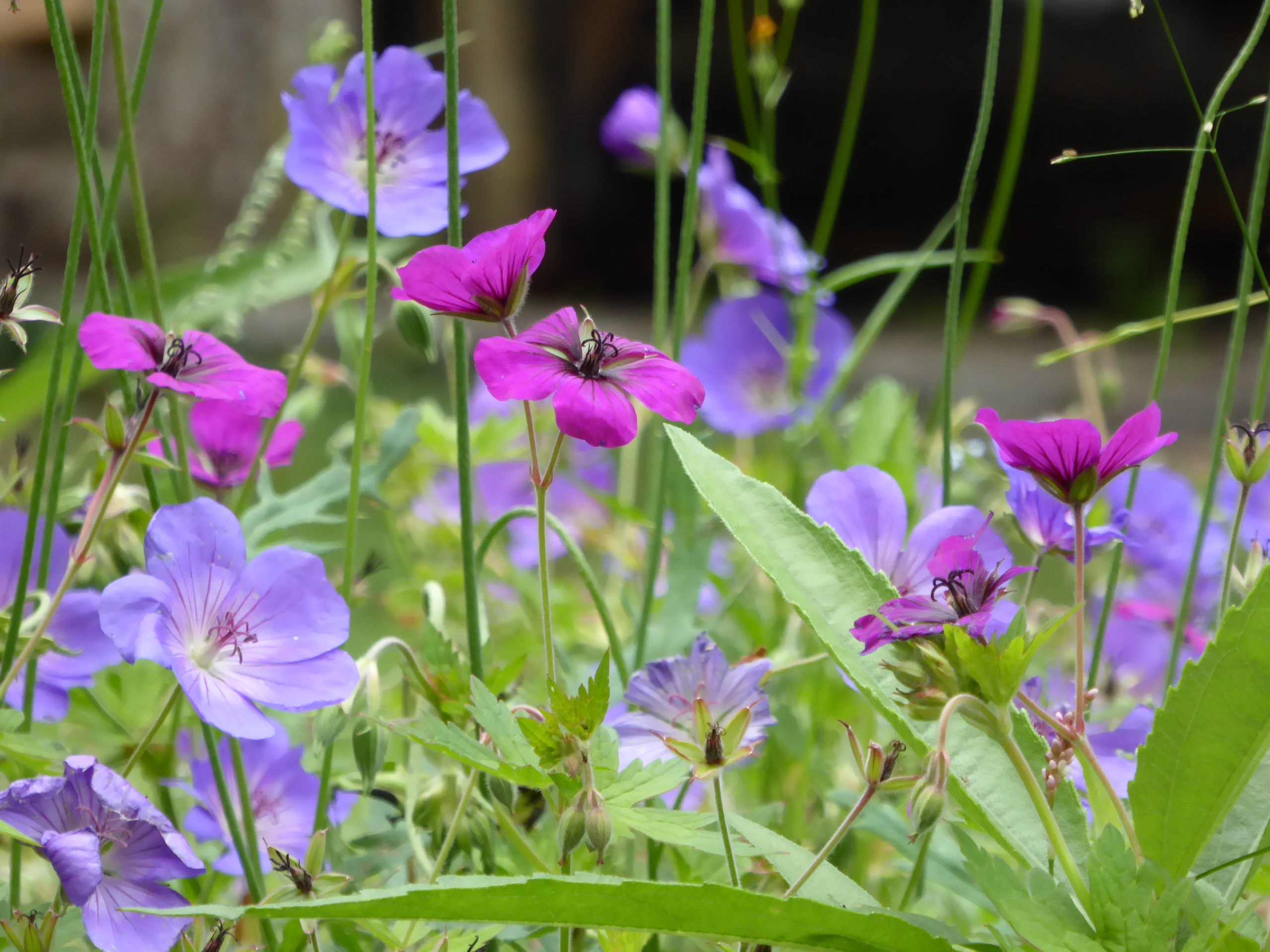 In het voorjaar hebben de blauwe druifjes door de elfenbloempjes gebloeid en in de voortuin heeft de steenbreek met de Perzische mutsjes een wedstrijdje bloeien gedaan!